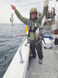 점점 봄날씨가 되어가는데 어구는 꾸준히 나와주네요!어구가 끝나가면서 대구와 임연수등 다른어종도 간간히 보이고 있고, 어군에 비해 입질이 점점 줄어 들면서 모리겐, 일반채비 조과 차이는 갈수록 심해지네요.