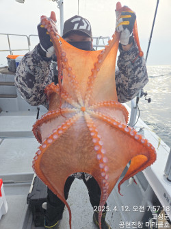 열한 분 모시고 문어 낚시 다녀왔습니다!시즌 초반에 수온이 낮아 마릿수는 매우 아쉽지만 방생은 없었습니다.아직도 10미터 부근에는 해초가 많아서 20~30미터 공략하였습니다.합사가 계속 터지는 분들이 계십니다.8합사 3~4호 준비하셔야 합니다!문어 낚시는 일반적인 생선 낚시처럼 챔질 후킹을 심하게 하실 필요 없고,바닥에 물건 들어올리듯이 지긋이 유지해 주시면 됩니다.밑걸림도 마찬가지로 팍팍 뽑지 마시고 힘 준 상태로 버티고 있어야 문어를 뜯어낼 수 있습니다.